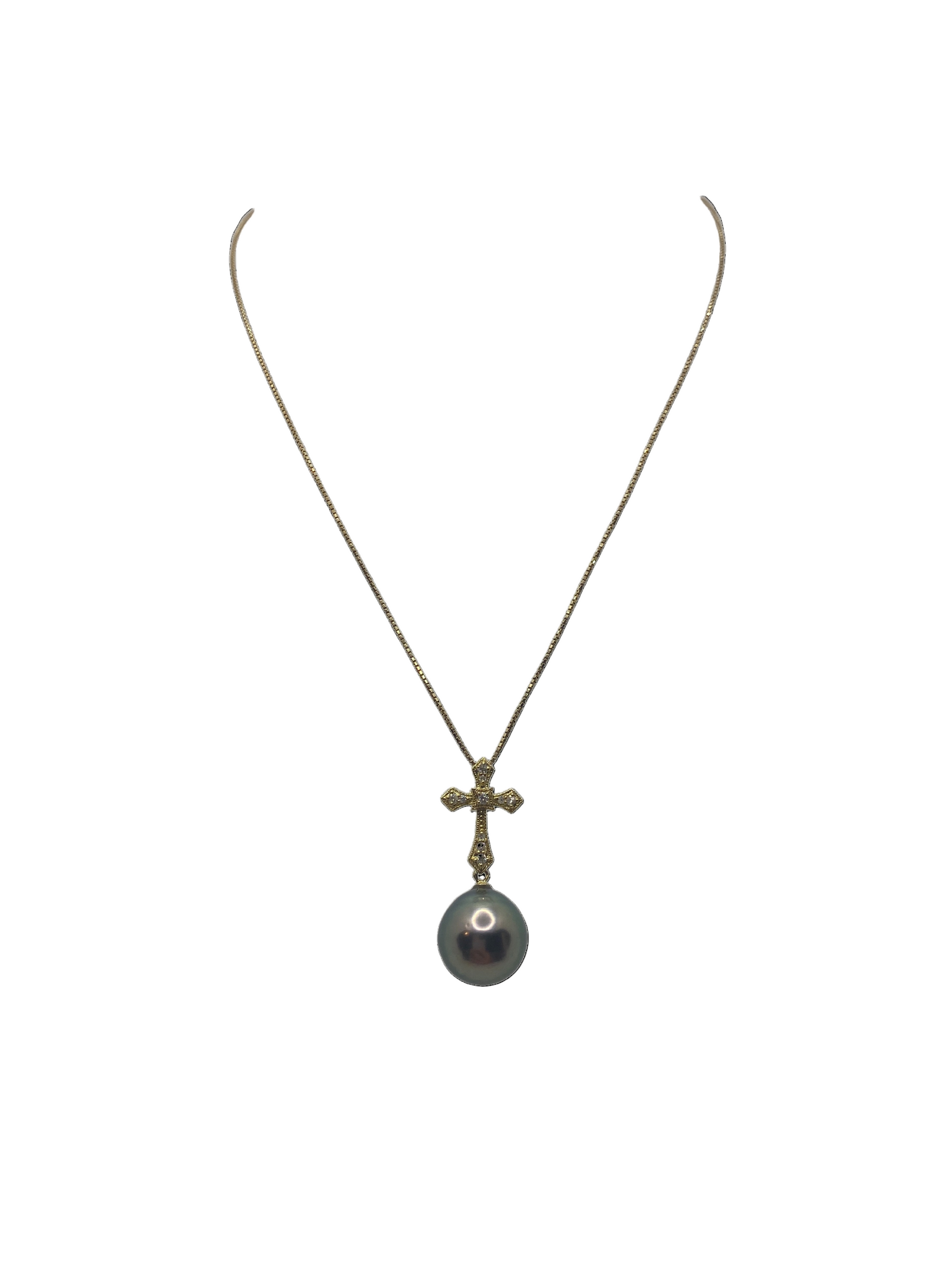 Divine - Tahitian Pearl Pendant Charm with 18k Gold & Diamond Cross